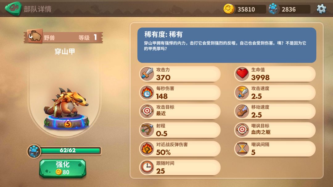 野兽的中费嘲讽单位,血量较高费用适中,攻速太慢,近战反伤(一般)