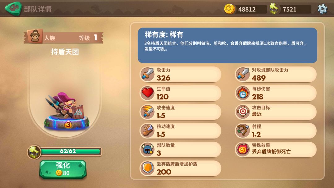 木盾常配合三射手使用,增加三射手的存活率,人海战术也非常实用