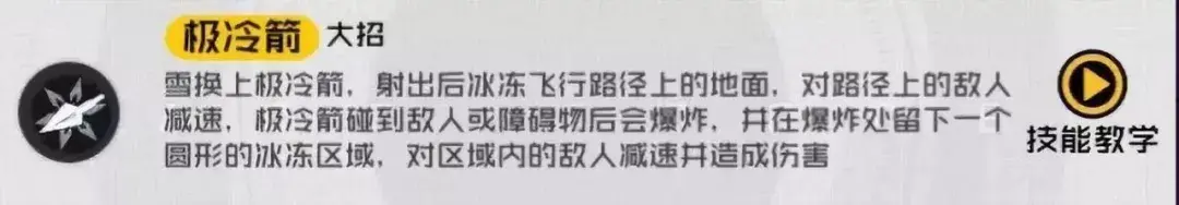 1、雪的【极冷箭】的飞行路径宽度为1~1.5个身位,爆炸后伤害半径为1.5个身位。爆炸效果隔墙依然生效。