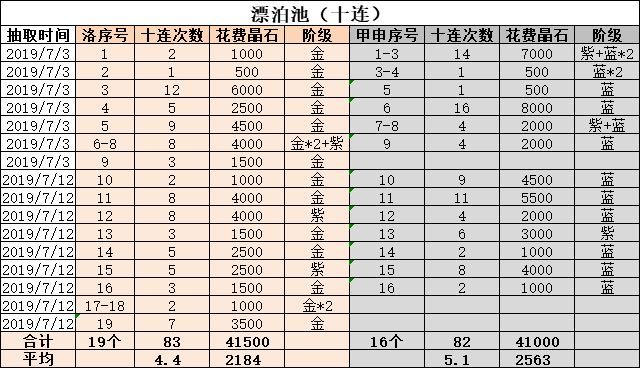 洛出货19个,平均4.4发十连出货,平均成本2184石,平均出货率2.3%。