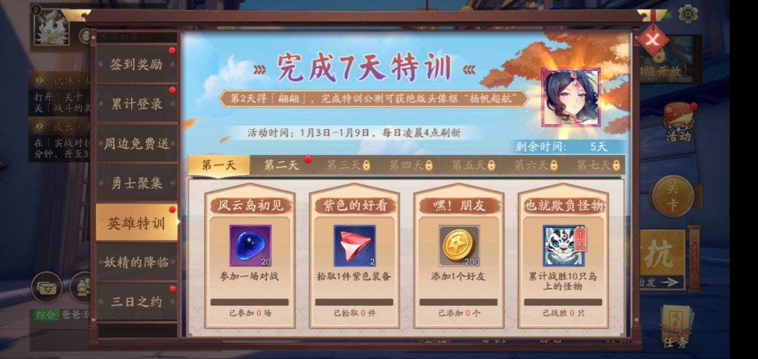 每天4个任务【贼鸡儿简单啊喂】,累计七天完成所有特训任务,可获得绝版头像框【杨帆季】