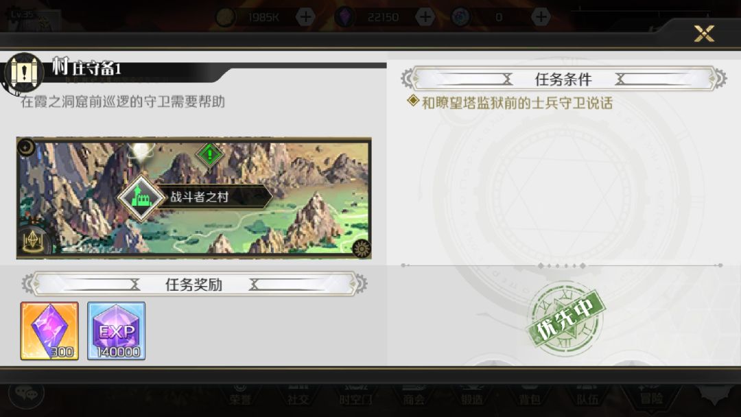 对话后任务更新为过三次战斗者之村裂缝。过完三遍提交任务。完成后会有提示战斗者之村出现新的任务,即任务三。