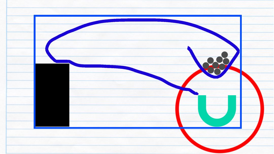 从“U”型碗的边沿为起点开始画一条尽量光滑的曲线到红球,然后攻其下面_(┐「ε:)_把红球需要走的路线用蓝线围成一条只足够一个红球通过的通道然后(注意手一直不松开)回到红球后面怼他菊花就是了