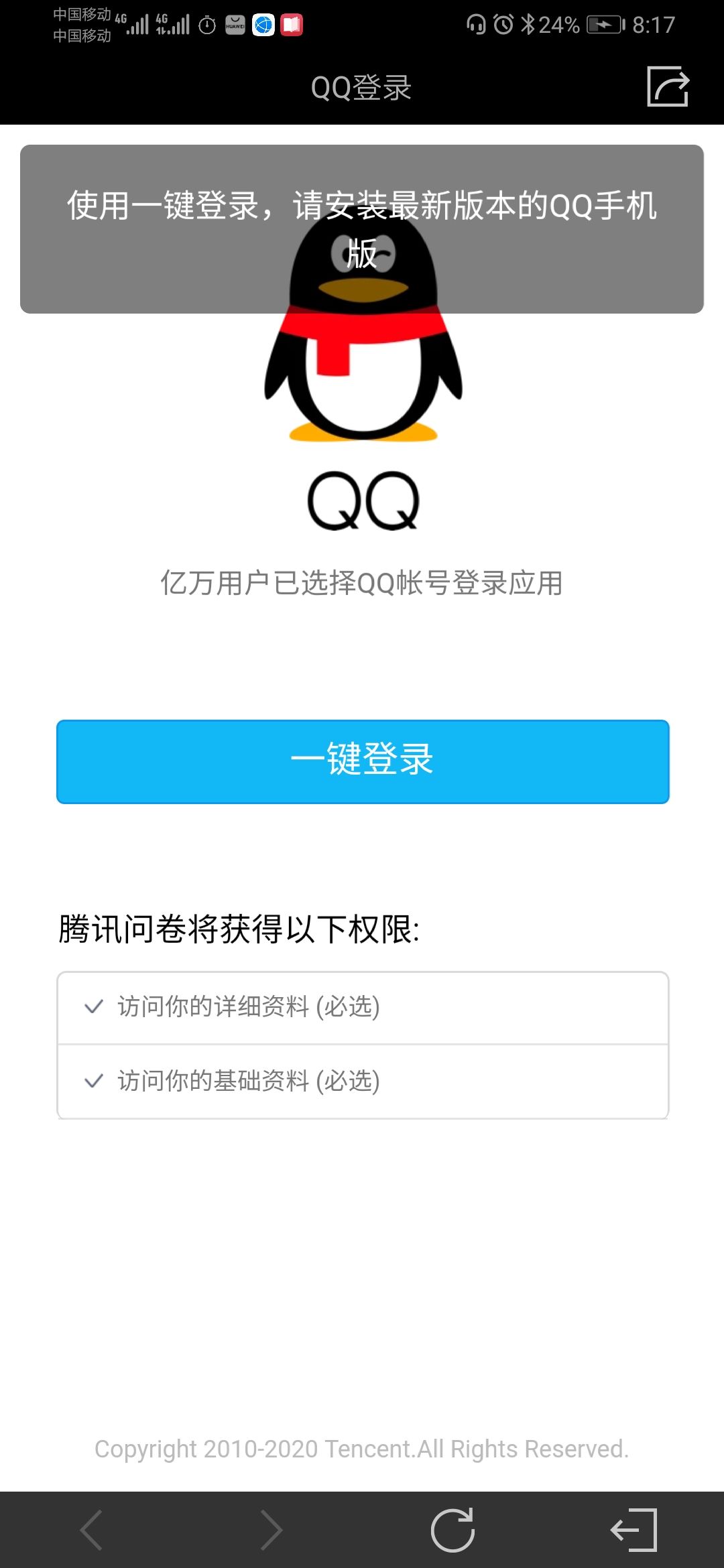 一键登录失败,QQ已经是最新版本
