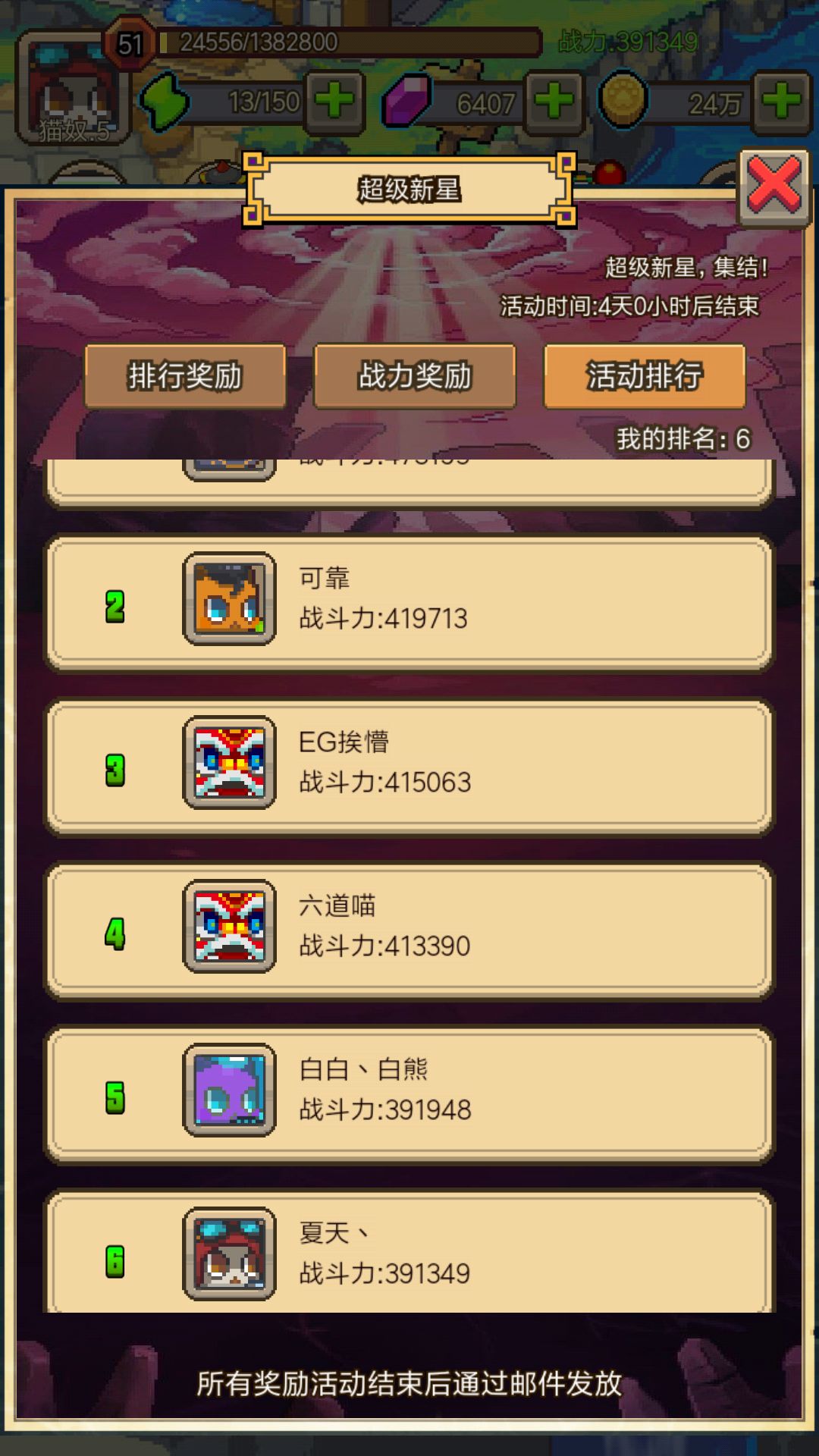 第三天玩下来不得不得说大家真肝。还是主要资源给年兽。然后多的资源可以分一个碎片多的宝宝。