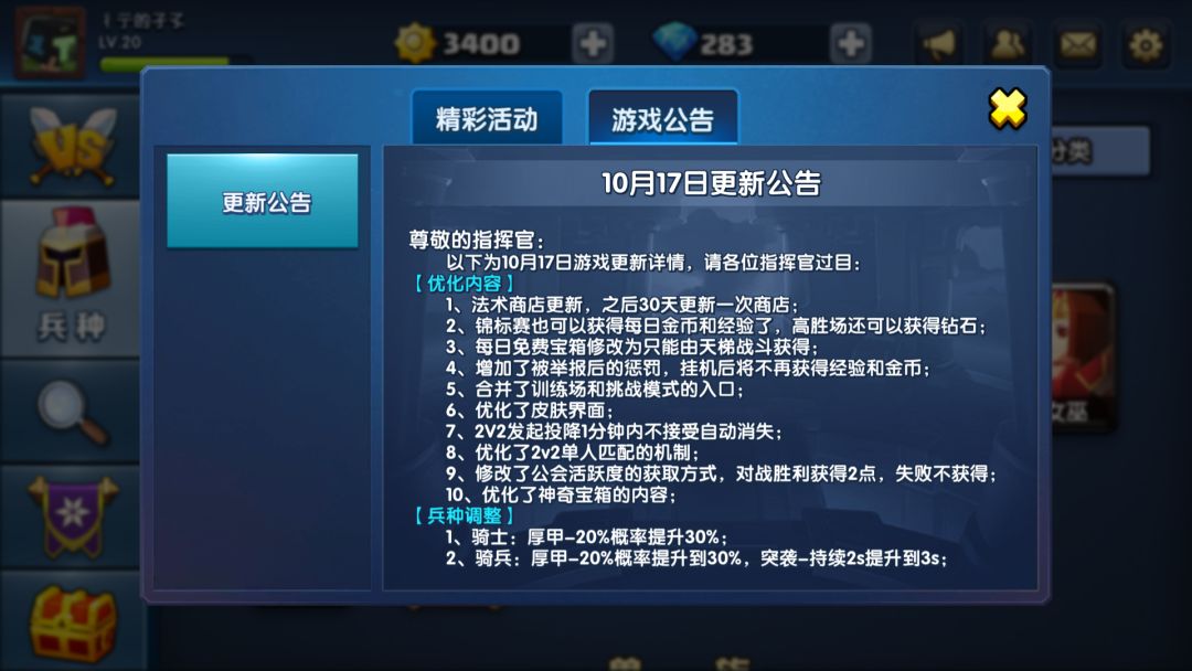 7、修改了公会活跃度的获取方式,对战胜利获得2点,失败不获得
