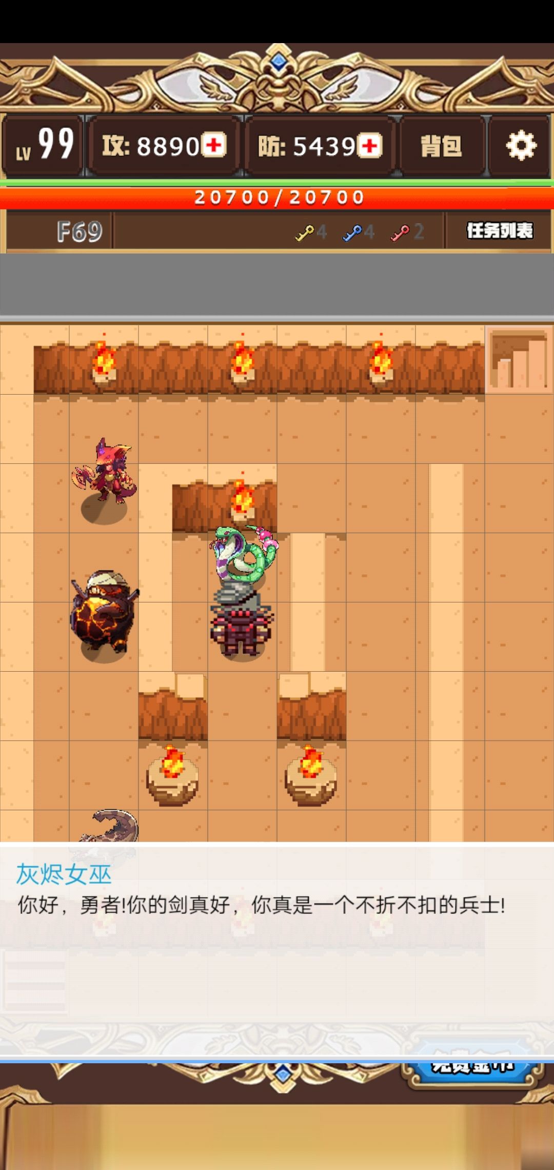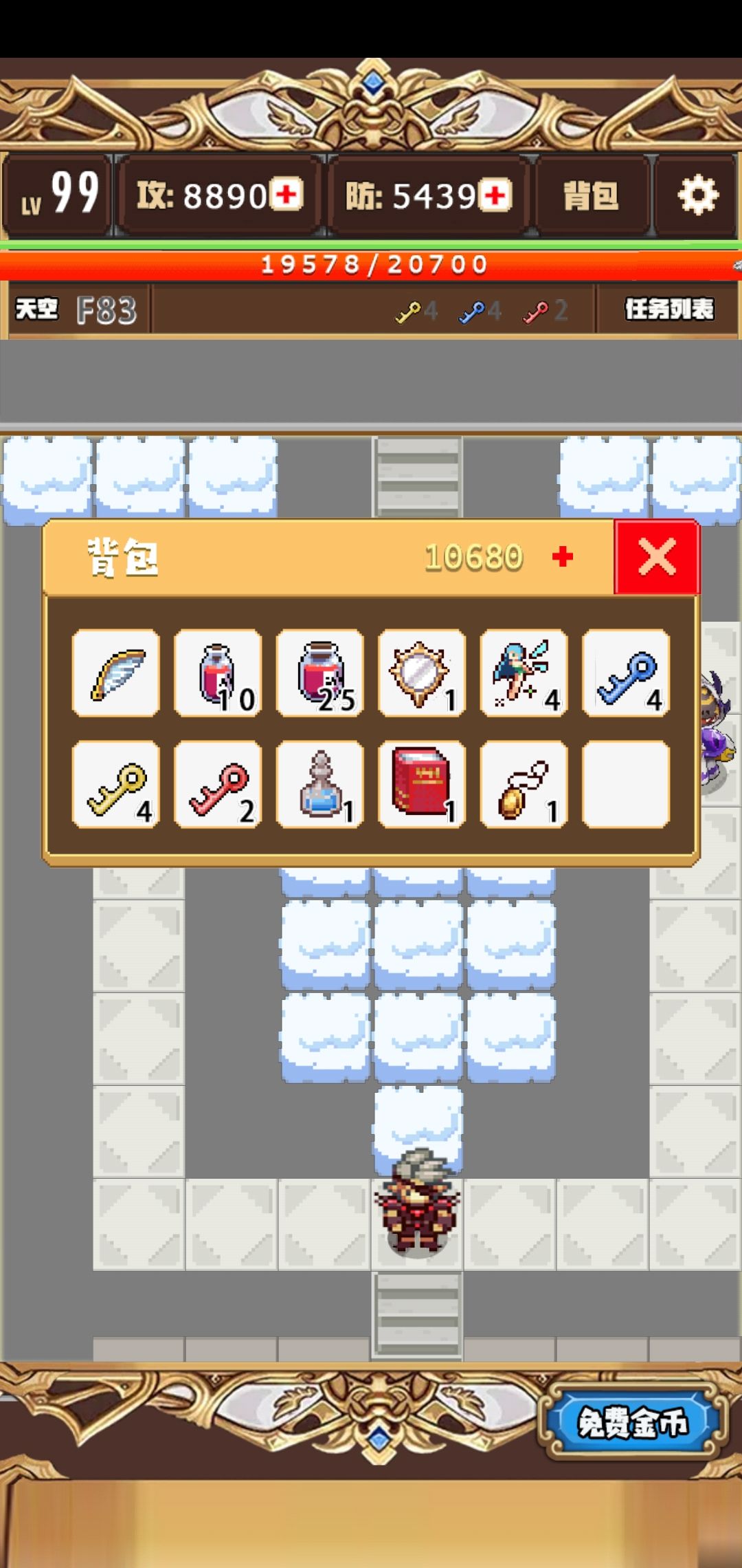 这里51层有个bug,如果你没合成烈焰之剑之前打开公主后面的宝箱,那么你这个天空灵石就等于没了,我在这被坑了两次,只能重来
