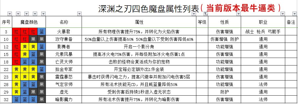 魔渊之刃法盘效果汇总(版本过老,不推荐使用)