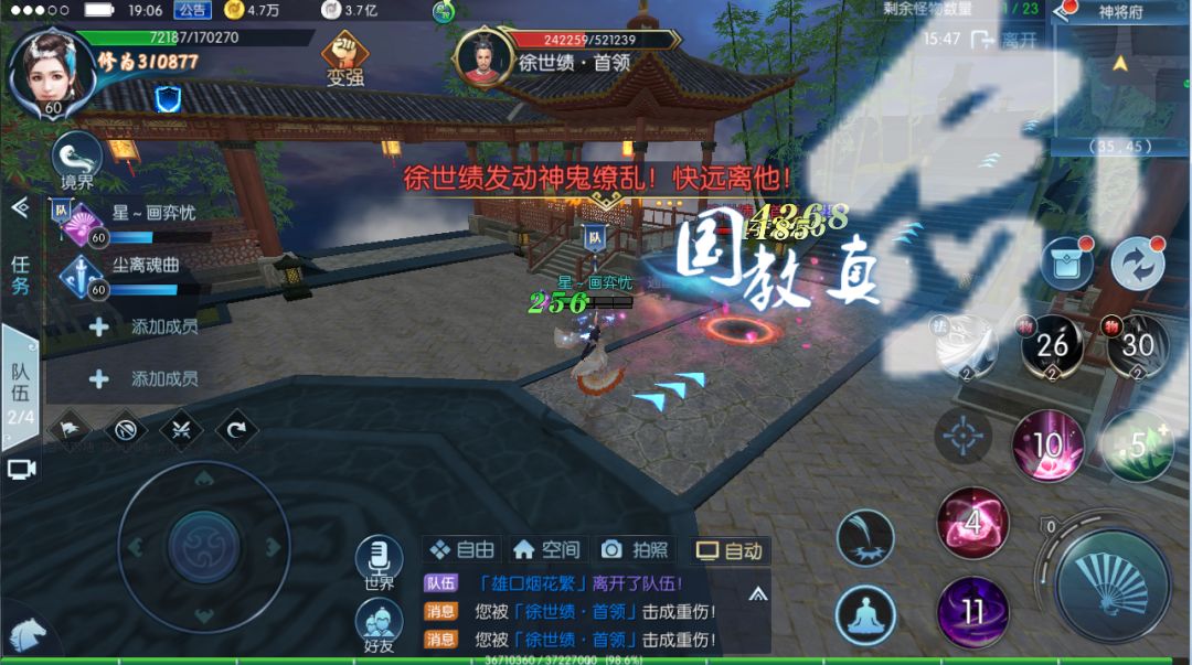 徐世绩作为英雄本的最终boss拥有极高的伤害和强力技能。其中犹以鬼神缭乱和武器投掷为最。徐世绩发动鬼神缭乱时,boss脚下有红圈预警,此时使用小跳躲避即可。不过,各位道友要注意跳跃方向哦,小编就是不小心跳到boss正下方了,柔弱的身体被瞬间秒杀了……