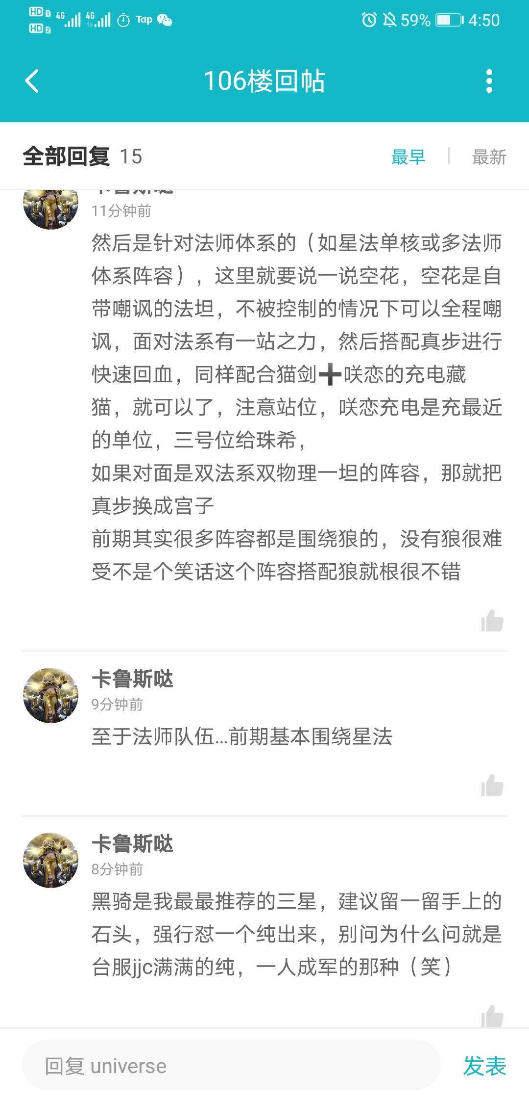 2,jjc的话,现在刚开服能玩的也就冲锋流和输出流,苟队的话可以玩玩变形的,羊驼是神奇的,宫子是物理队杀手,星法可以爆锤所有物理输出,咲恋充电的,***力加速的,猫剑是藏猫队,玩法太多,但前期就一条路,升练度就完了,也不用玩烧脑套路没有用,1w以内的人都是起码全三星,你阵容组的六也没用,输出比不过,tp比不过,尽量堆练度就好