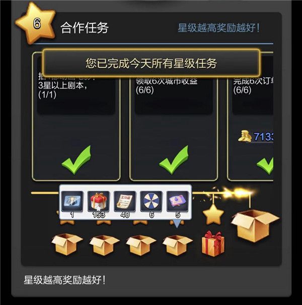 每日合作任务的第三与第四个宝箱分别藏有5张猎聘券,这里Michael Chen为何把获取难度增加为了两颗星呢?是因为好的合作伙伴起到事半功倍的奇效,而一个懒惰的合作伙伴往往让你在抱怨中成长。如果不想因为合作伙伴不做任务而闹心,这里Chen给大家提供一种简单有效的好办法,就是自己建立一个小号与自己做合作任务。这样既省心,又快捷,也不用自己给自己生闷气啦。当然啦,勤劳有爱的小伙伴仍旧占据了游戏的绝大多数,大家依旧要善待每一位与自己在游戏里建立起合作关系的“好基友”喔。