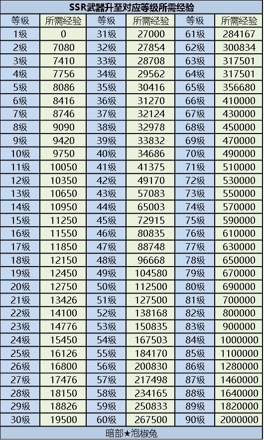 【忍村攻略】SSR武器经验表(暗部出品)