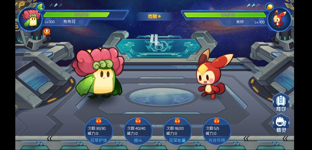 这是对面的布布花。他另一只是1级的地面系,这只米咔是我的,配招:阿玛迪斯光,光速突击,阳光普照,光线锁定。