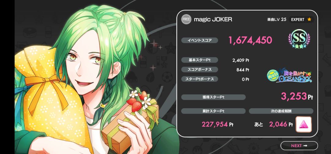还是以这个为例,打的歌是momo的magic joker(LV25 EXPERT),给了我 844点
