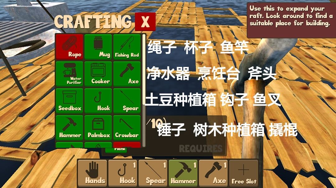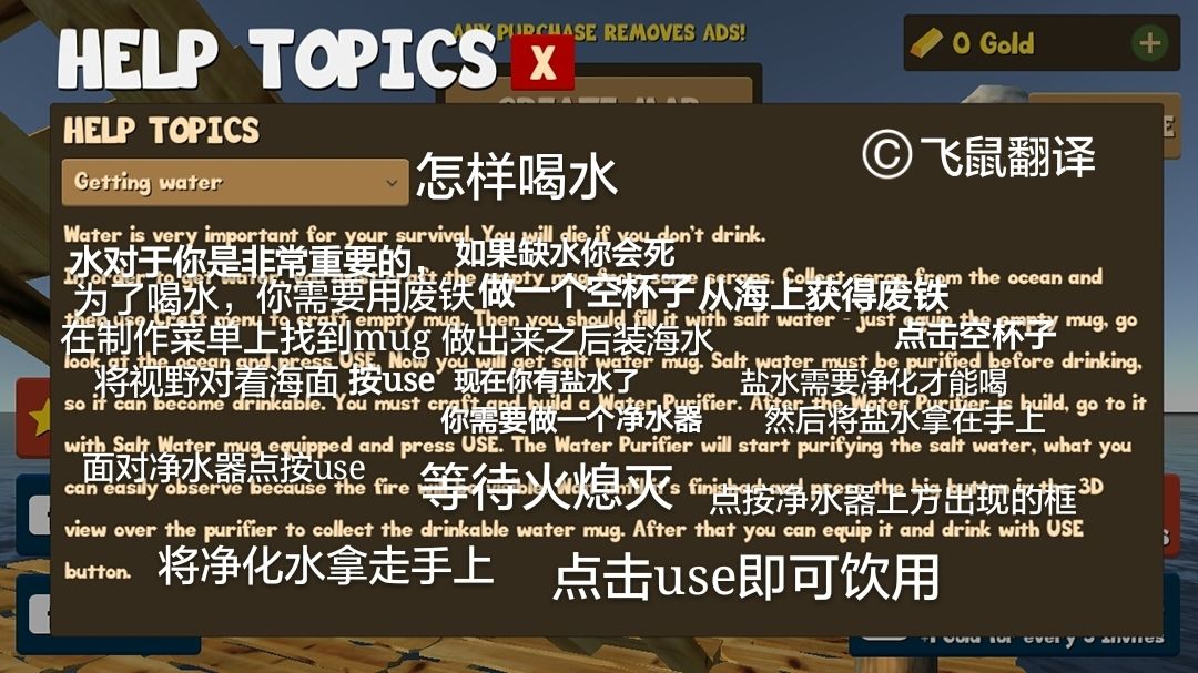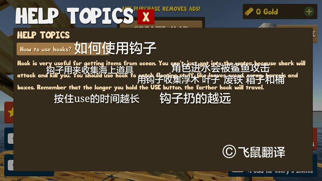 听说好多小伙伴看英文比较懵,所以把游戏里面大概的东西翻译了一下,包括帮助里面的怎样喝水和使用钩子,有不会的也可以找我翻译哦