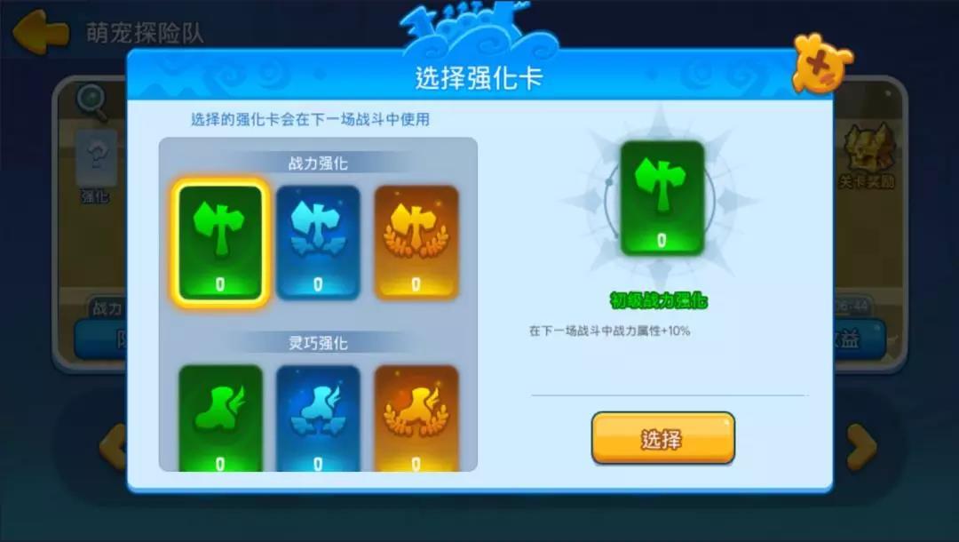 强化卡效果拔群,获得的加成非常丰厚,但是属于一次性道具,尽量保证消耗在一些比较困难的关卡哦!