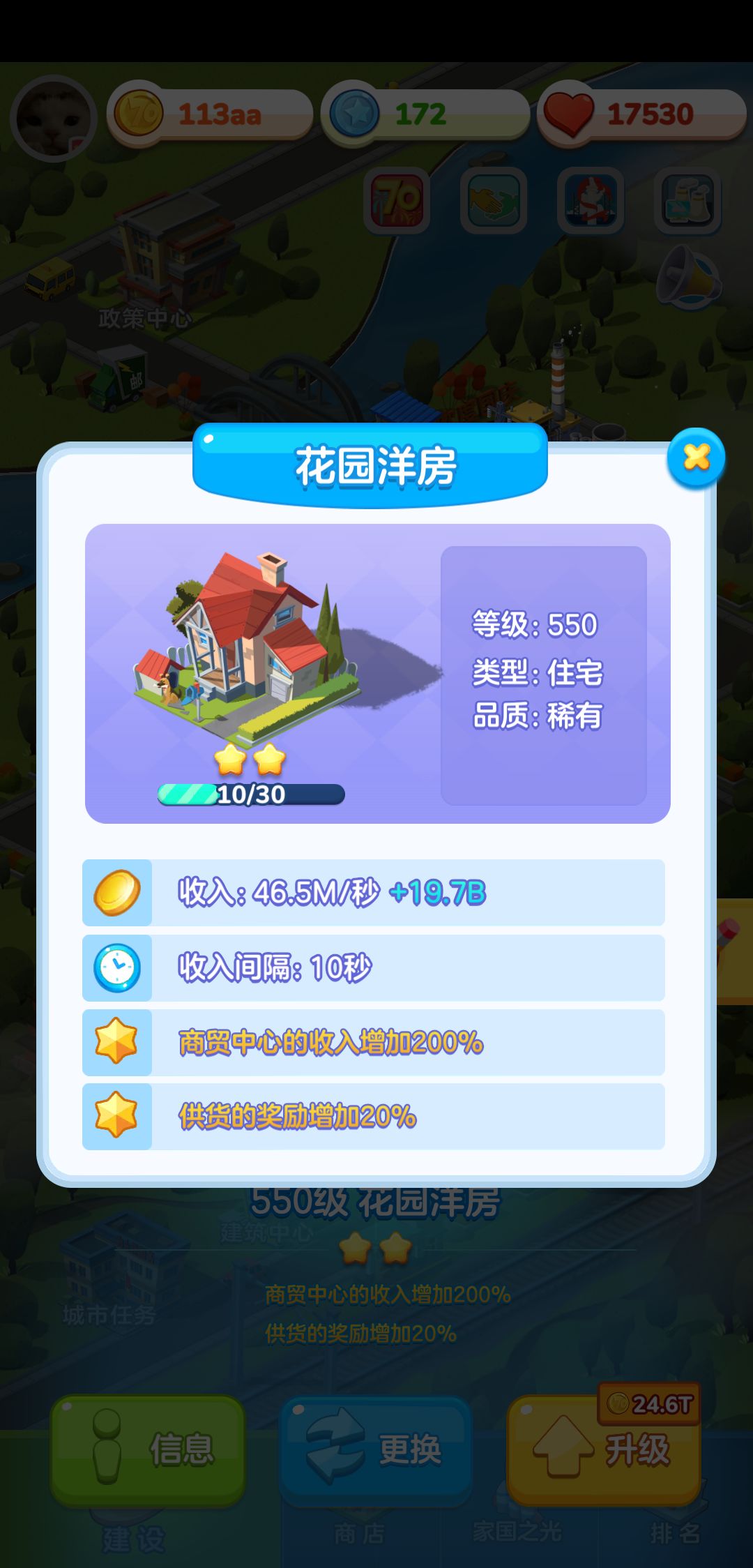 这是我现在的建筑收益可以看到我的建筑是主木屋的,这个游戏的机制是火车给的奖励随机但是也有多少的蓝色建筑一次给1-4个供给紫色给1-3个金属的给1-2个,玩到现在的人都知道奖励是逐级增加的,但是运气不好的小伙伴就算都是蓝色建筑也不一定开出想要的奖励(ಡωಡ) 金色的给的多但是次数少,全是金币的话就亏大了。这时候就是这个游戏的建筑属性出场的时候了。