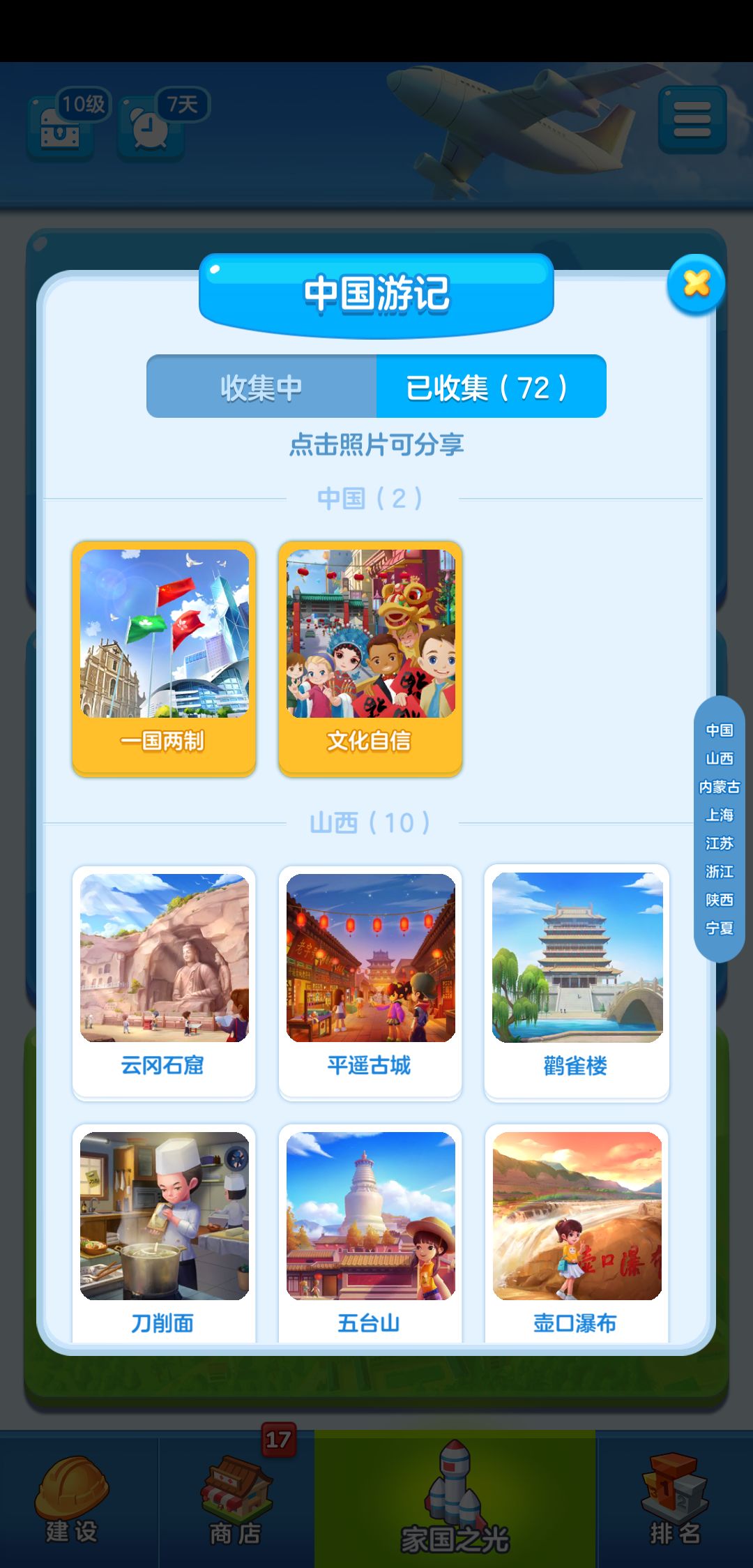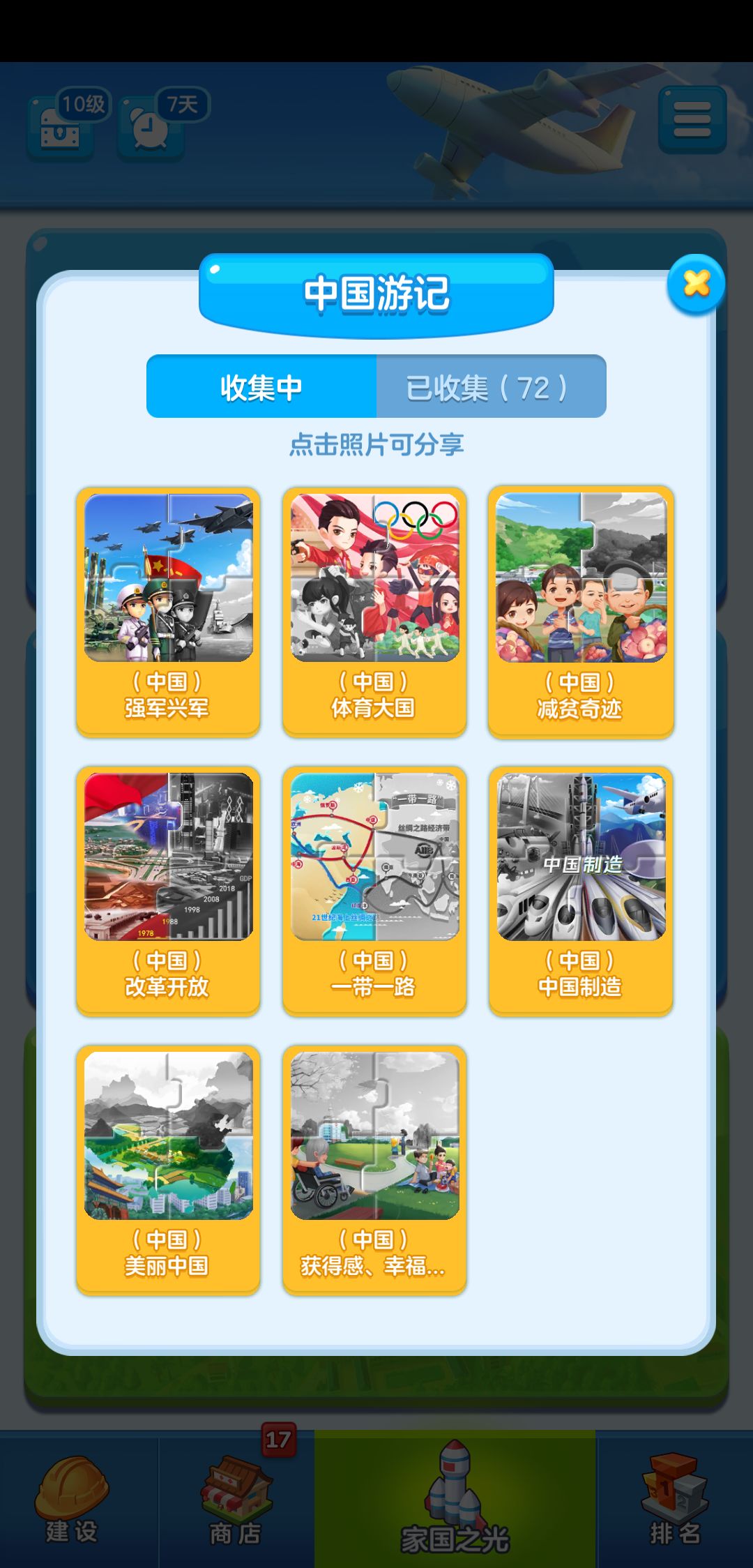 这是我奖励的加成,在低加成的状态下我一个蓝色和紫色建筑给一个福气红包或者是一个图鉴金色的是3个。换了高加成的建筑去点火车我一个蓝色的给2个福气红包和相册,金色的给2个多福红包(看清了是100档那个)相册给几个就不用我多说了吧。 之前看见有人发存下来相册等着今天开新的,我的没存感觉没必要还不如开了抽国家那,今天就靠开火车我的相册就满了还开出了2个国家相册。