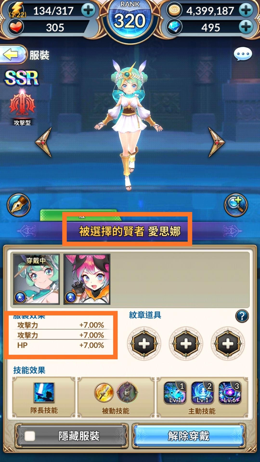 其他备注:(泛用性广,竞技场、降临都用得到)2.3版本速报,新服装神秘海洋女神更值得购买,三属性+10%,攻击力合计+20%