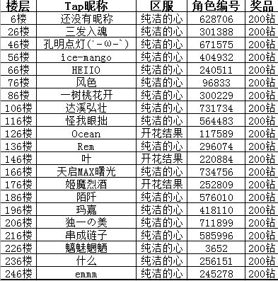 因有楼层被删或没有填写中奖信息,所以获奖名单中缺失了部分楼层获奖信息。请有疑问的玩家可以进群找梦梦补齐您的帐号信息!!!