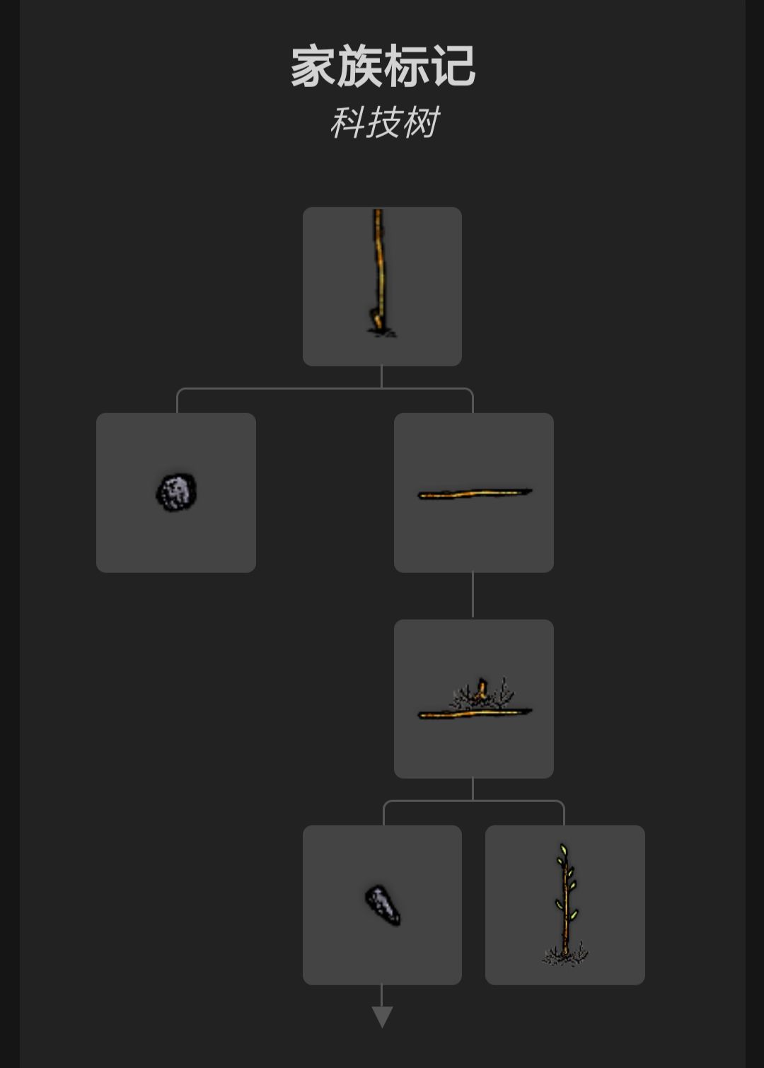 找到一根树苗,用尖石头削下,把杆子放空地上再用圆石头砸一下即可,当远离你远离它时,右上角的箭头便会指向你制作的家族标记