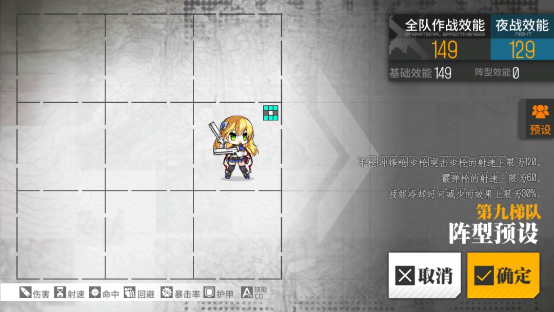 射程:少女前线站位为九宫格,战斗中人形可在这九个格子中自由移动。