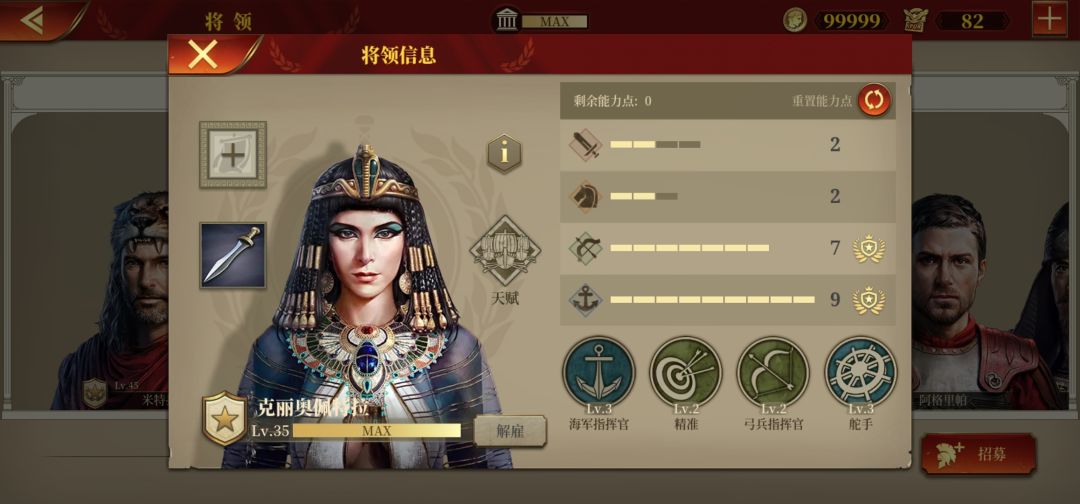 总结:本作的海战较少导致艳后的位置有些尴尬但勋章任务和对海军技能有一定的要求.而且艳后是本作中唯一的女性将领