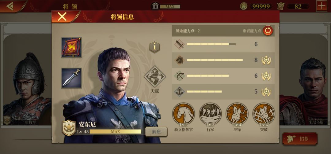 天赋:步兵大师所在区域周围两格步兵攻击力+15%