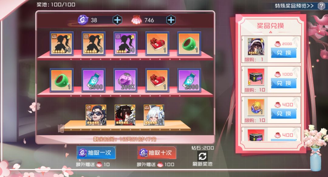 3)娃娃机:再也没有比娃娃机更刺激的了,使用游戏币可参与娃娃机,每消耗1枚游戏币可获得10个贝壳,抽100次必定获得特殊奖池内所有道具(中途刷新奖池将会重置抽奖次数);贝壳可兑换大量奖品,包括不限于安妮、红色装备箱、宠物蛋、超级基因;