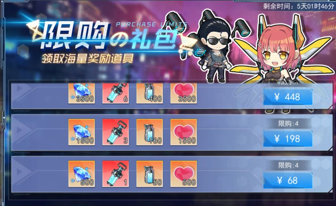 2)基因样品礼包:活动期间,购买礼包可获得超级基因、基因样品、琉衣亲密度、钻石;