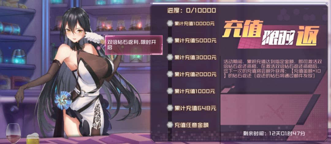 6)钻石返利-银行:活动期间,累计充值达到一定额度,可获得钻石返还;