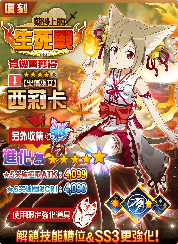 ※此活動的★4【火狐巫女】西莉卡,唯有使用「火狐鑰匙」才可以解放能力。