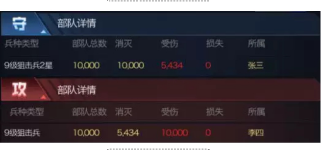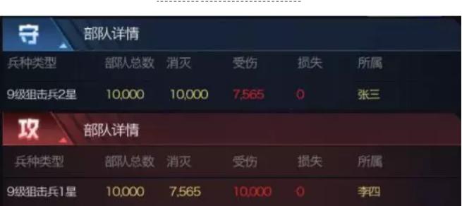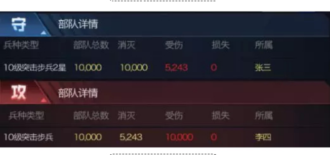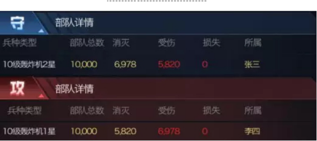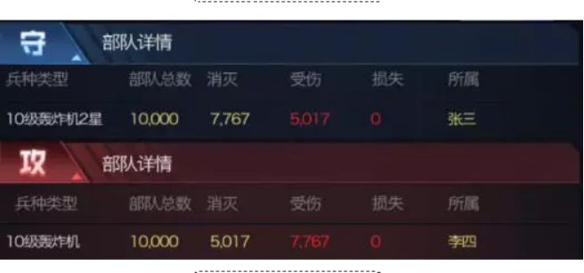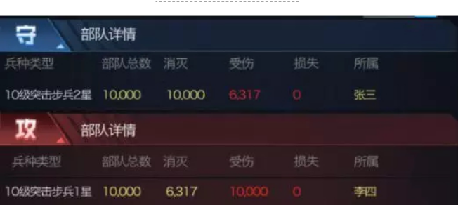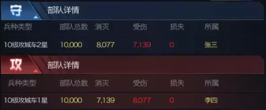 以下对比战报为保证伤害浮动性达到最低,使用的均为无科技,无机甲,无英雄,无任何加成的基础部队对战战报对比。并且采用同兵种进行测试,直观得到星级提升的兵种收益对比。