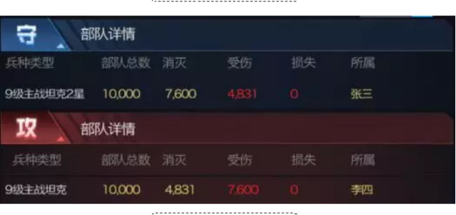 二星的主战相比零星主战,提高了3/1全面领先。而二星对战一星的战报,虽然二星看似勉强获胜,但这主要因为主战是浮动性较大的兵种,同时主战新增技能对于主战内战时,并没有任何提升,所以各位看官在提升荣誉勋章等级时,可以自行考虑。