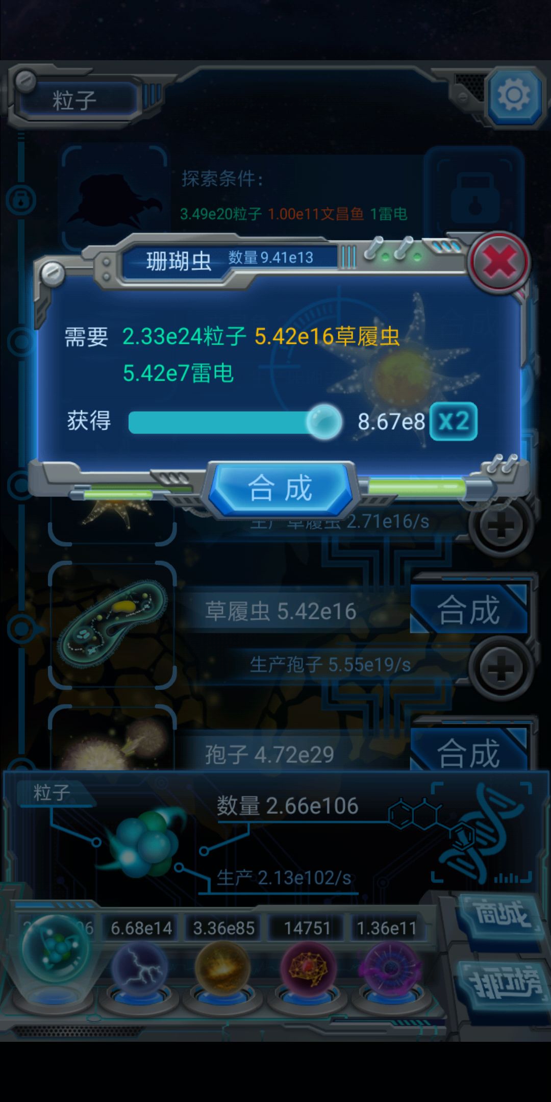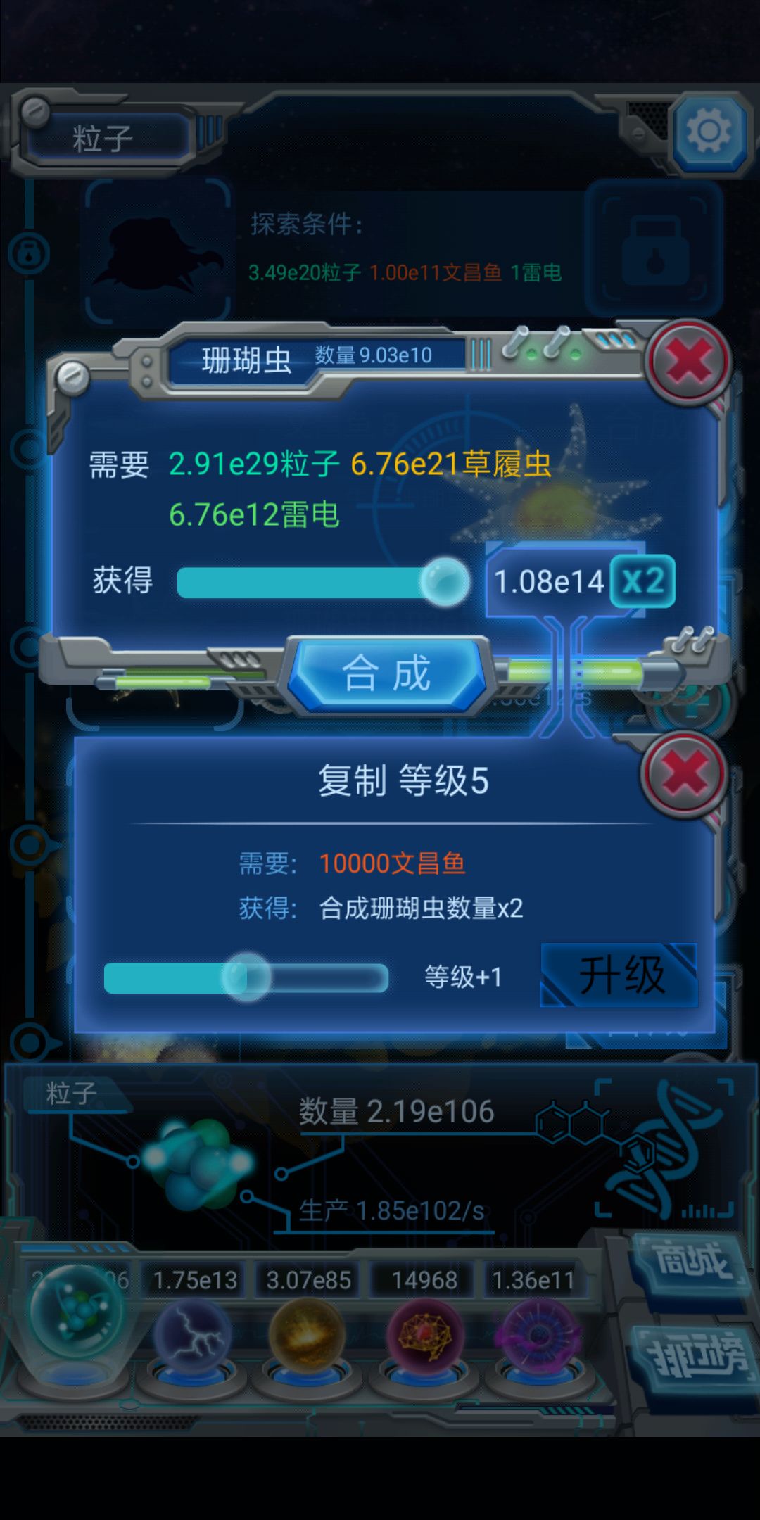 一个珊瑚虫需要1e9草履虫合成(不计算复制等级)