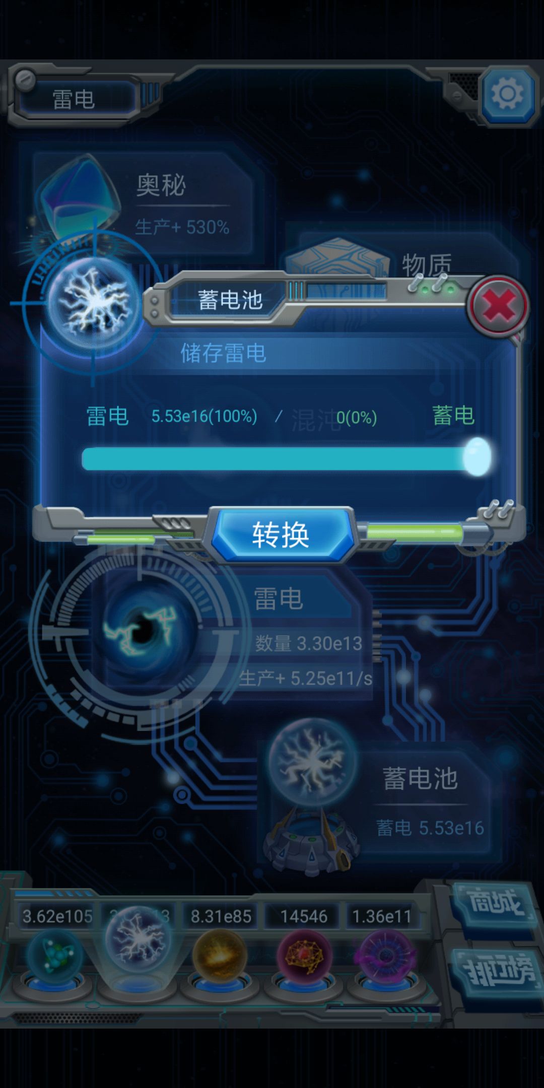 所以将所有闪电用于投入精炼的新天体