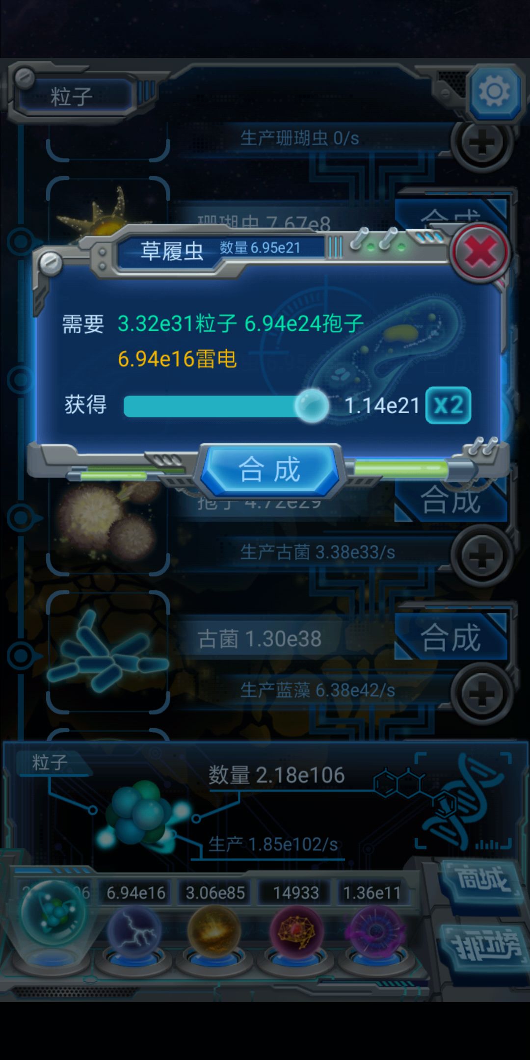 也就是说,只要我们合成前的草履虫数量大于7e21