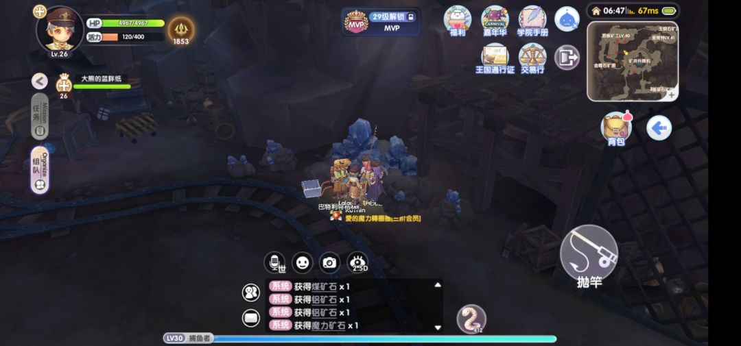 采矿的时候打开学院手册乱看,退出来发现采矿变成钓鱼了,钓上来的还是矿石。哈哈哈