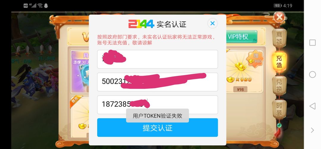 我怎么实名认证失败了呢?导致我充不了钱,很烦,怎么解决呢?