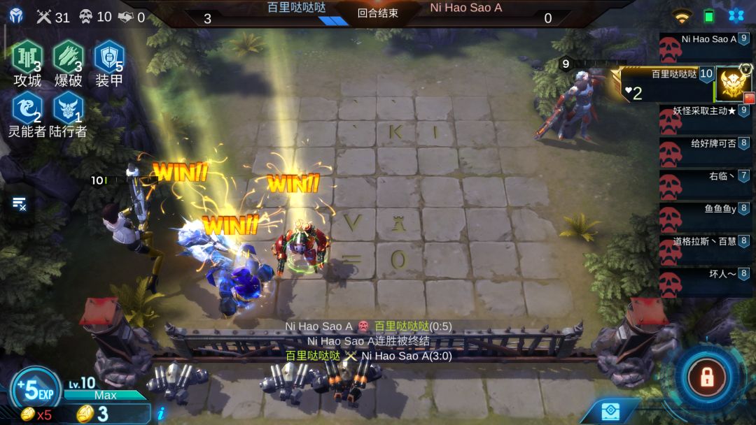 方舟、雷震子、攻城车、铁鸡(因为忘记截图,所以尴尬而不失礼貌的微笑中T^T)。雷震子一定要用远距离英雄把它卡住,防止它跳出去被秒。