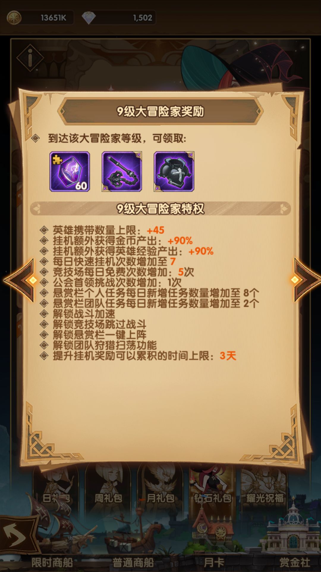 最后说下vip等级,大冒险家(vip)和rmb是10:1的比例。几个有明显差距的分别是v6,v9,v13。