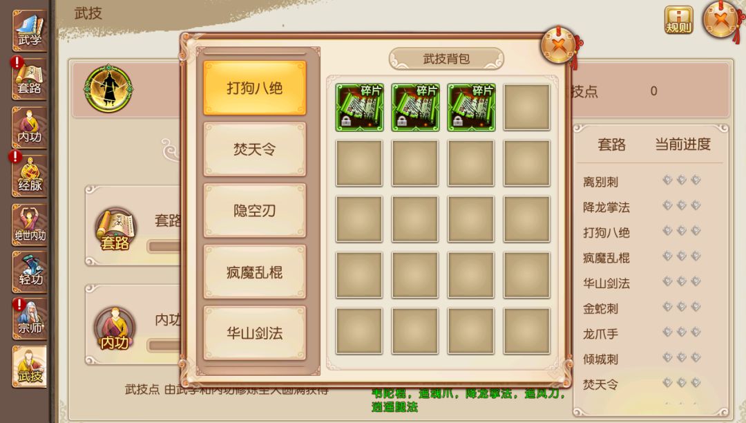在《九阴》手游里,武技以残卷的形式流传。当你掌握的武学很多时,背包难免有些杂乱。