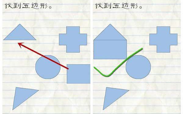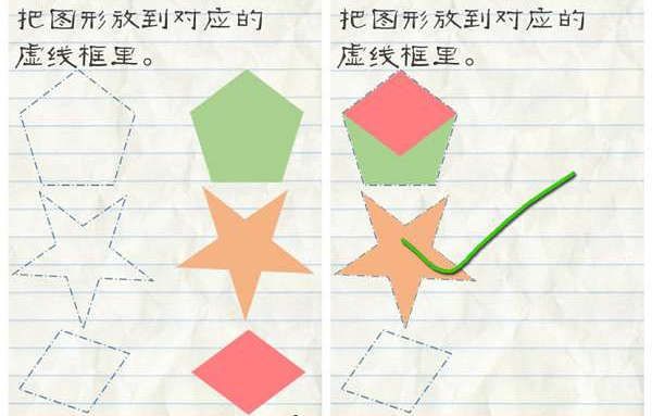 1.找到五边形,把右边的长方形拖动到三角形下面,就形成了一个五边形,点击这个五边形即可通关。  第16关攻略: