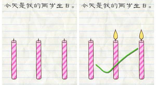 1.今天是我的两岁生日,只要伸出你的两根手指按在两支蜡烛上,两支蜡烛有火苗了即可通关。  第32关攻略: