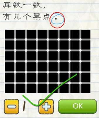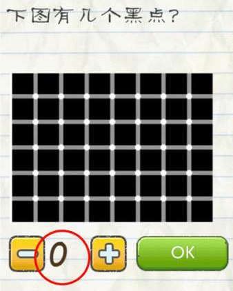 1.下图有几个黑点,其实下图里面是没有黑点的,只是视觉效果看着有很多,所以输入0,点击OK即可通关。  第52关攻略: