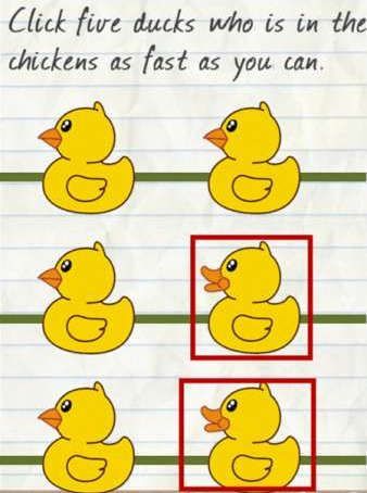 1.只要连续点出混在鸡群中的鸭子,鸭子的嘴巴不一样,只要鸡群开始出现到结束,点击鸡群里面的鸭子即可通关。切记是点5只,不要点多了。  第8关攻略: