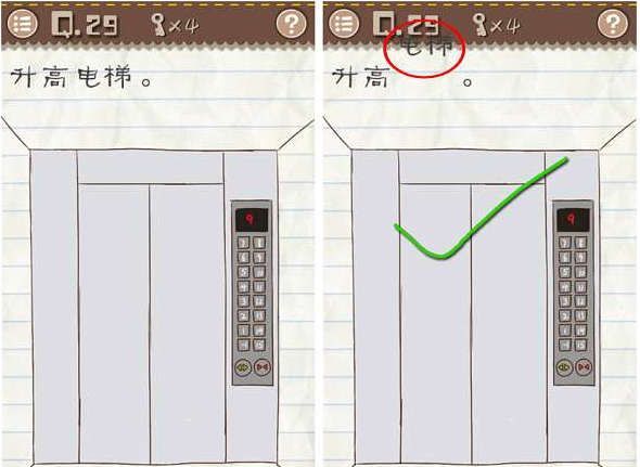 1.升高电梯。其实只要把题目上的电梯往上移动就可以通关了。  第30关攻略: