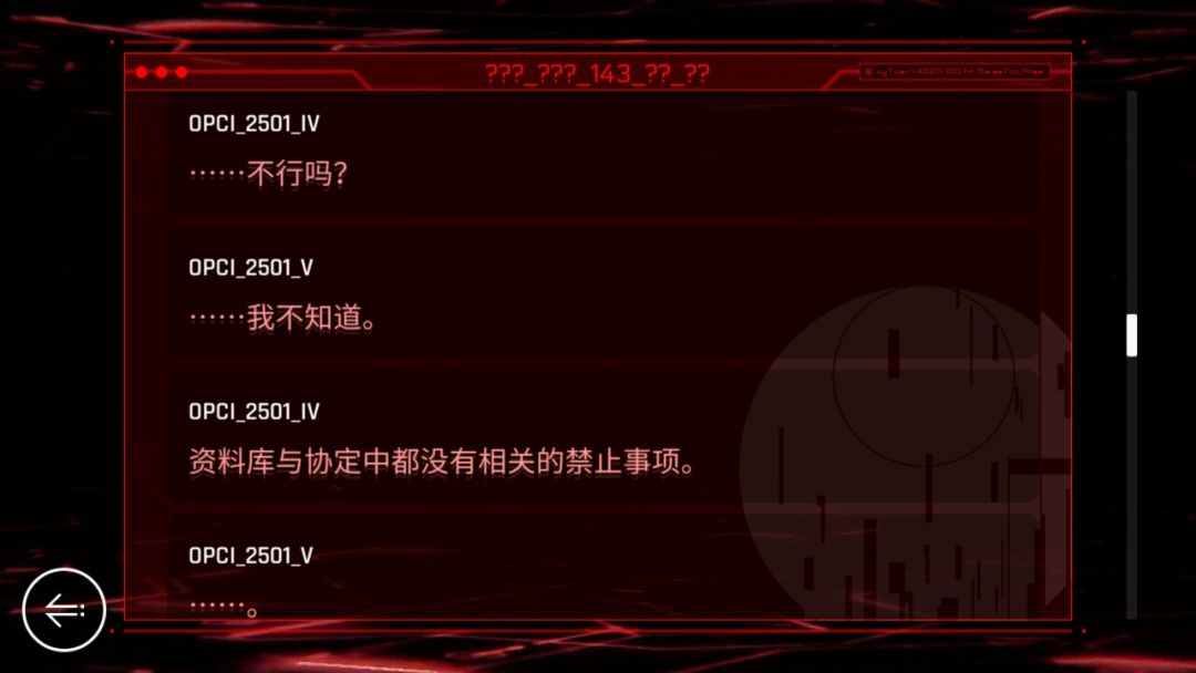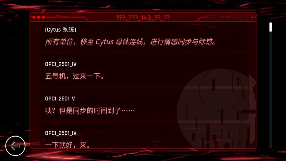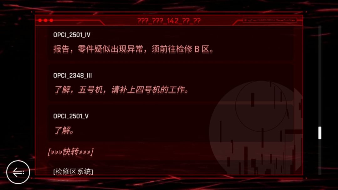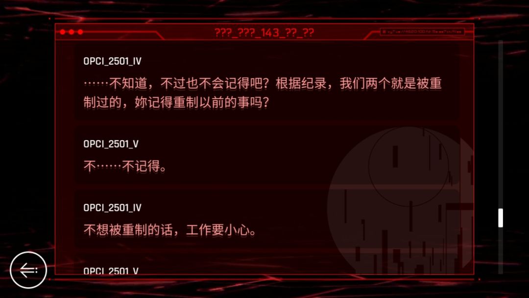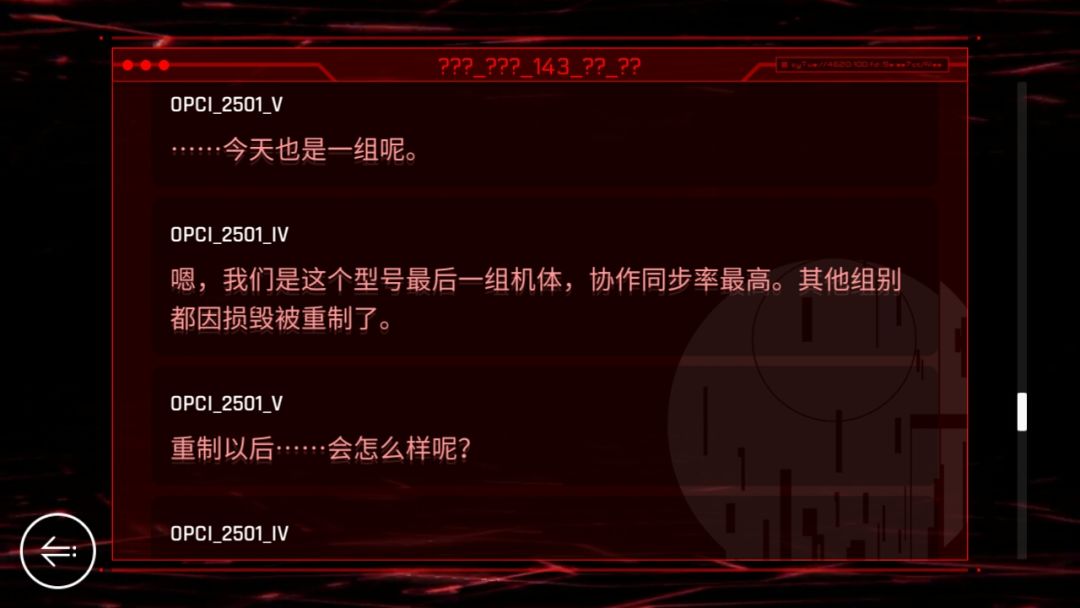 OPCI_2501_IV发现自己重复着日复一日的检查与工作,并且发现其他的机器人也做着一样的事情。它发现自己与其他人不一样,认为是自己出现异常,但检查之后发现自己并没有异常。后来逃掉工作来到了shelter的一个湖边,开始怀疑自己的存在。