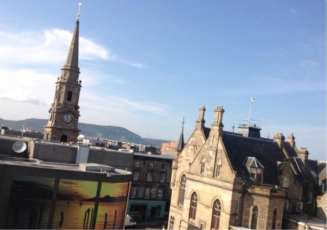 “老板,那是你不懂艺术,你看,窗外钟楼旁的那两个年轻人不就被我的歌声吸引住了吗?一直不肯走呢!”