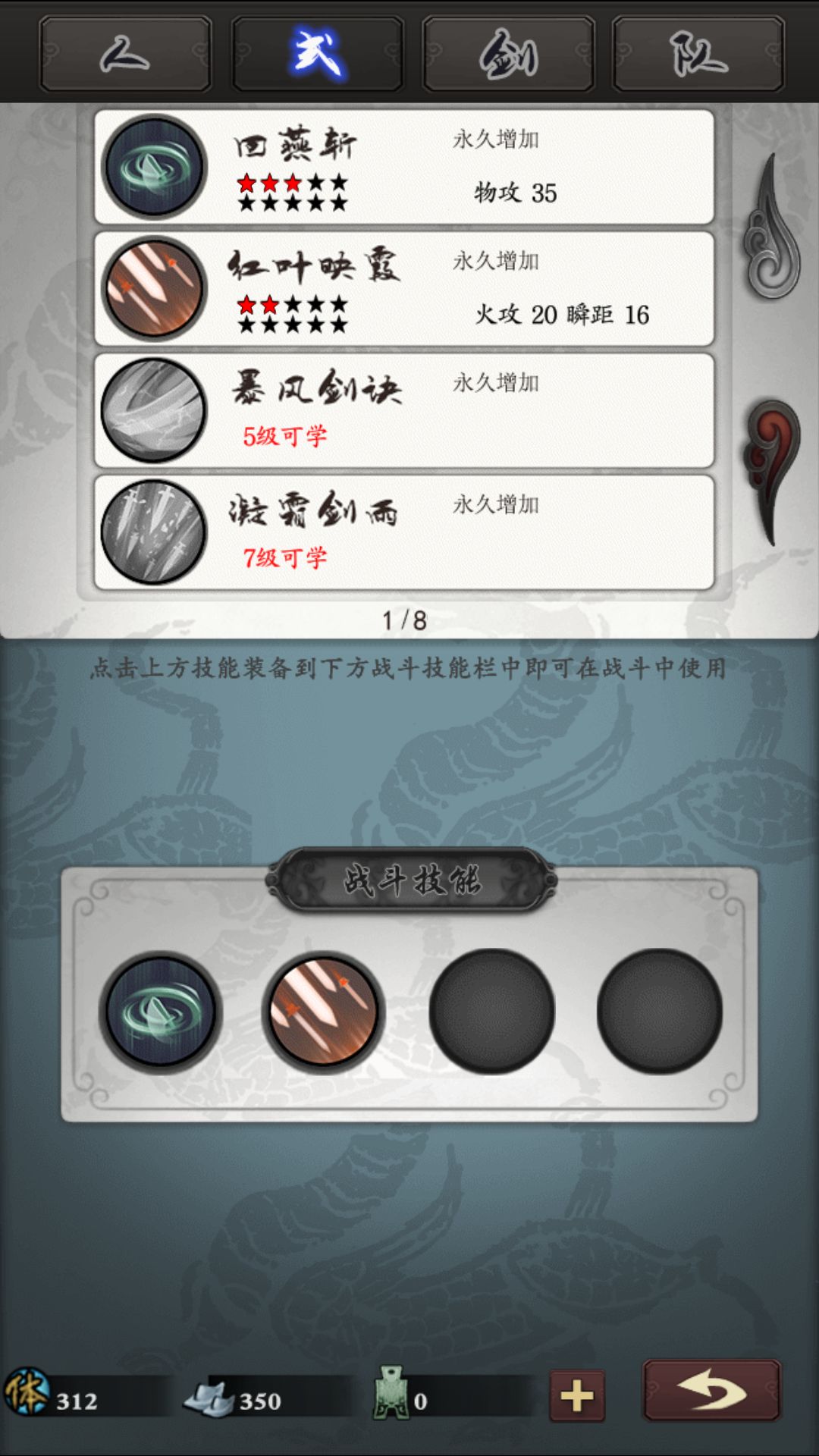 好了,接下来三级,开了一个新地图-兰若寺又称龟袍寺(某人的狮子掉龟袍评论 手动滑稽),先别进去挑战。进入人物的技能列表